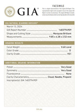 Detail1: Marquise 0.60 ct D VS Vg Vg N GIA
